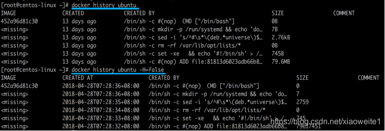 作用: 查看本地一个镜像的历史(历史分层)信息