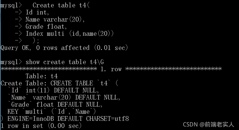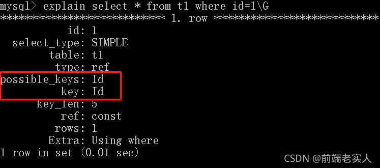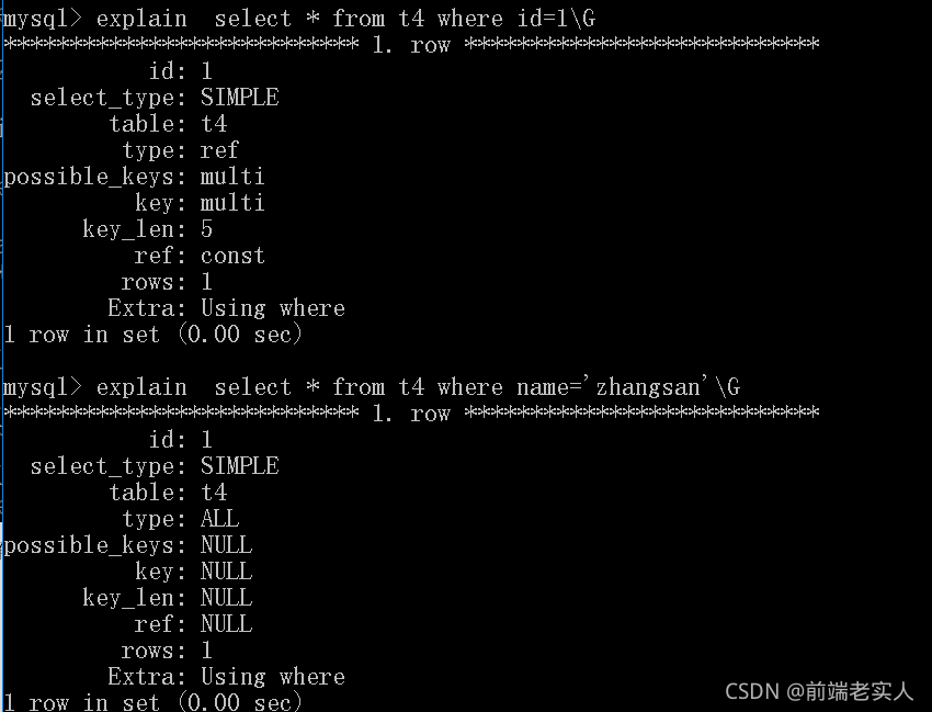 注意: 在多列索引中,只有查询条件中使用了这些字段中的第一个字段时,多列索引才会被使用