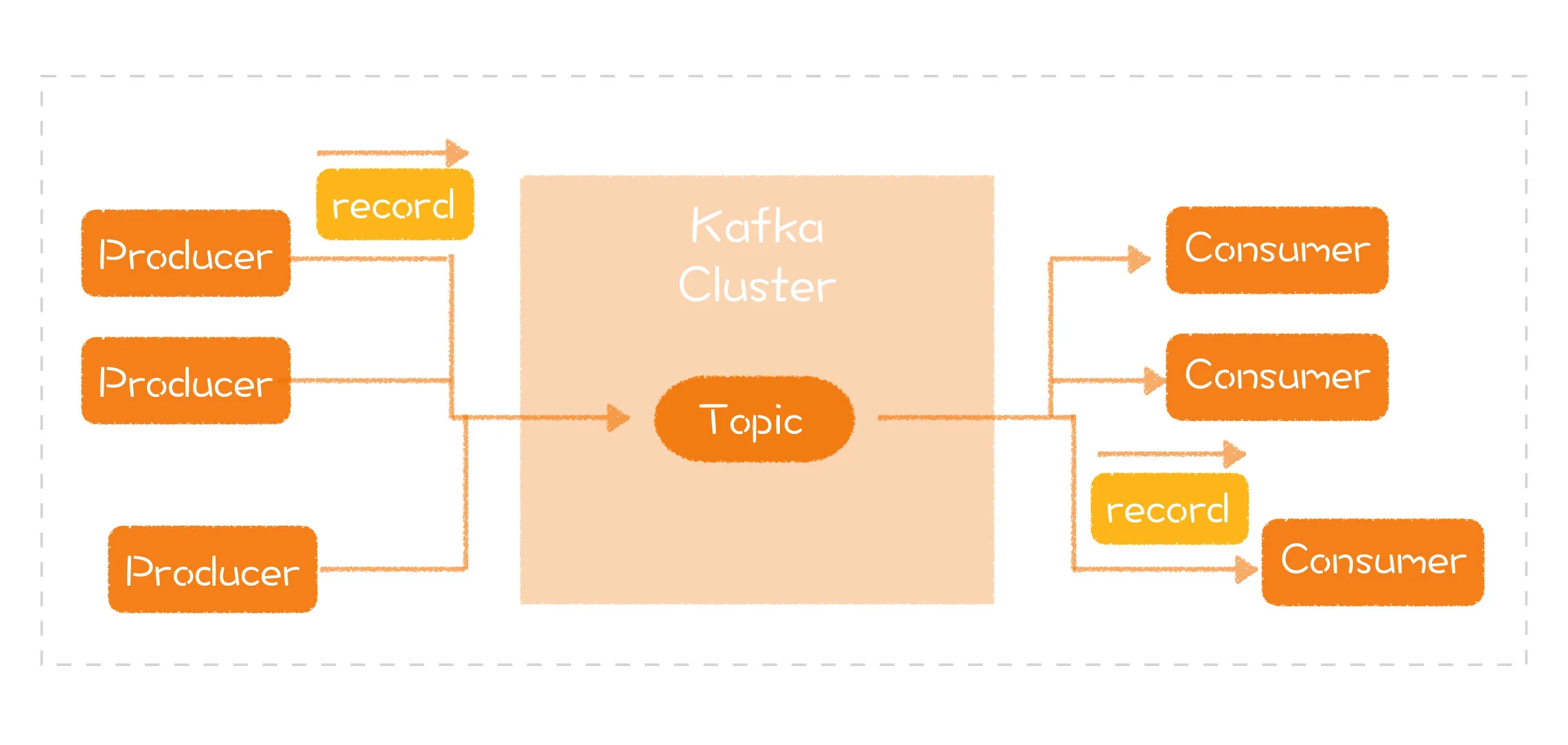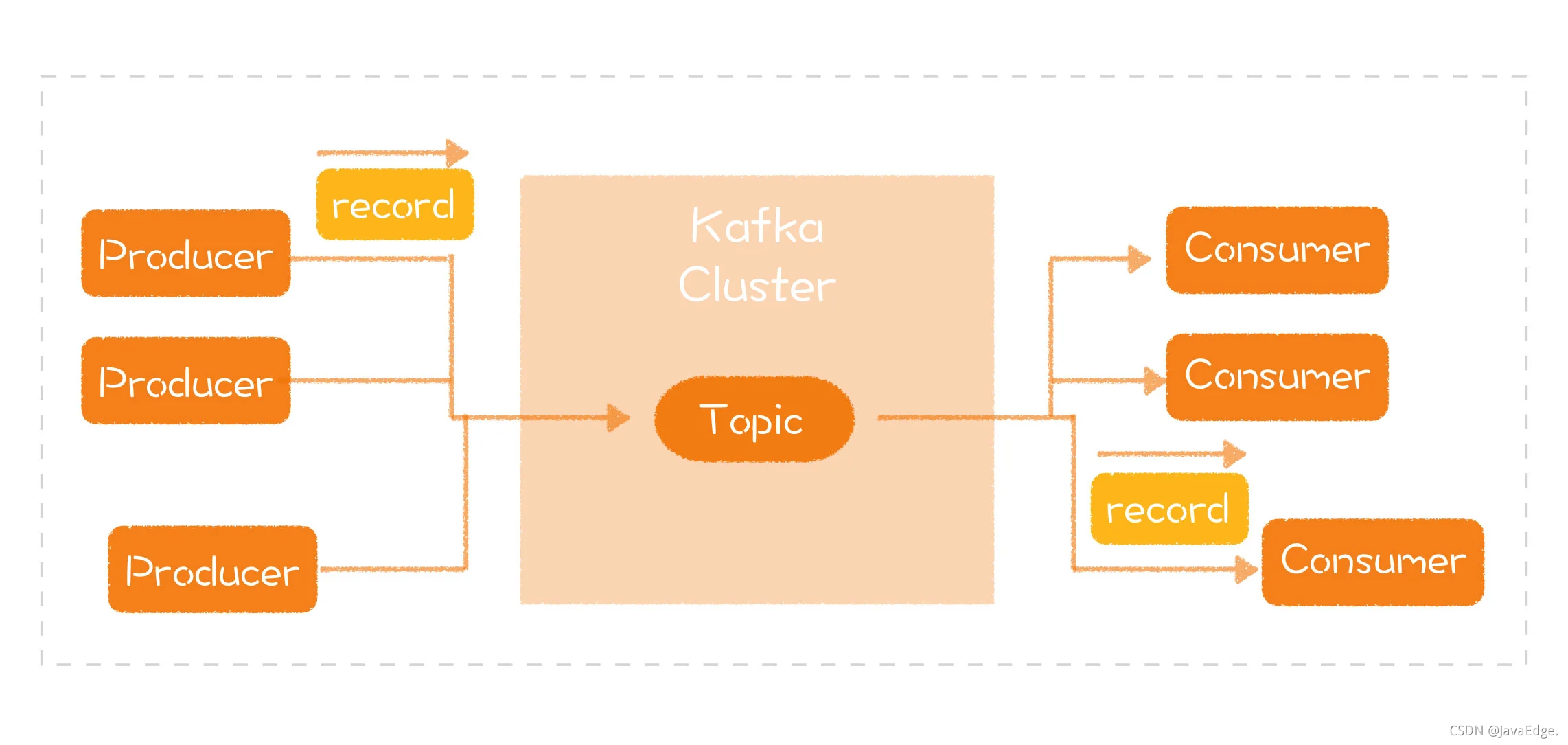 Kafka网上能搜到各种架构图,看个 最简单的架构图,因为最贴近MQ基础模型: