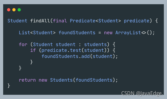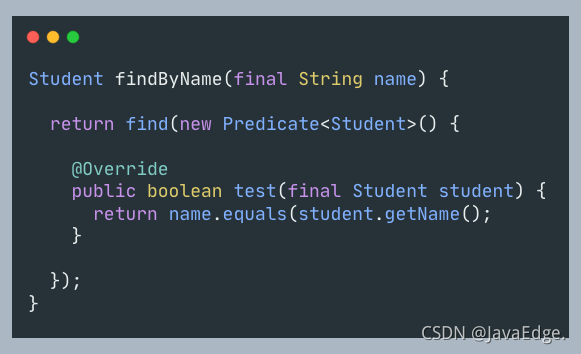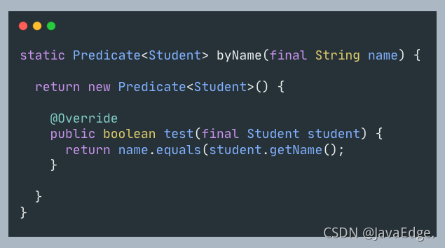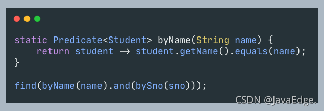 比如,在Java里,Predicate是JDK自带的,and方法也不用自己写,加上Lambda语法简化代码: