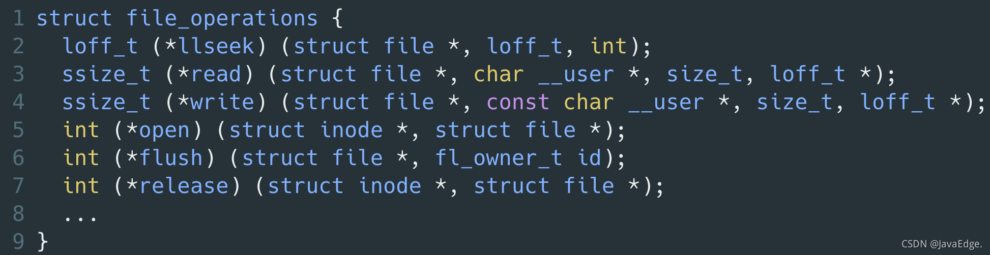 Linux文件系统用C实现了OOP,就是用了函数指针: