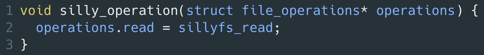 本该在hellofs_read运行的代码,跑进了sillyfs_read,程序崩溃。对于C这种灵活语言,你无法禁止这种操作,只能靠人为规定和代码检查。