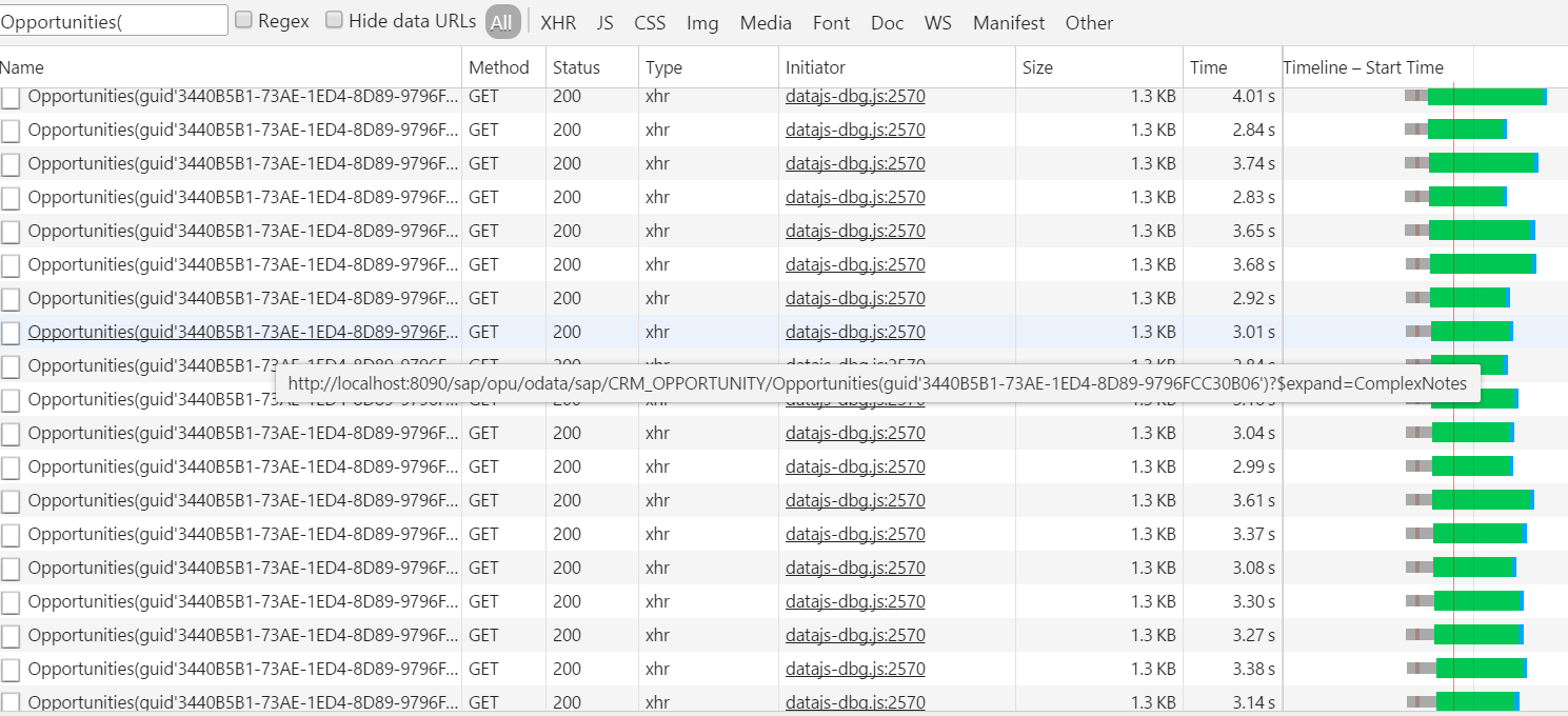 有时我们能在Chrome开发者工具的Network tab里观察到SAP UI5应用会发出某些状态为"取消"的OData请求。如下图第五个请求。