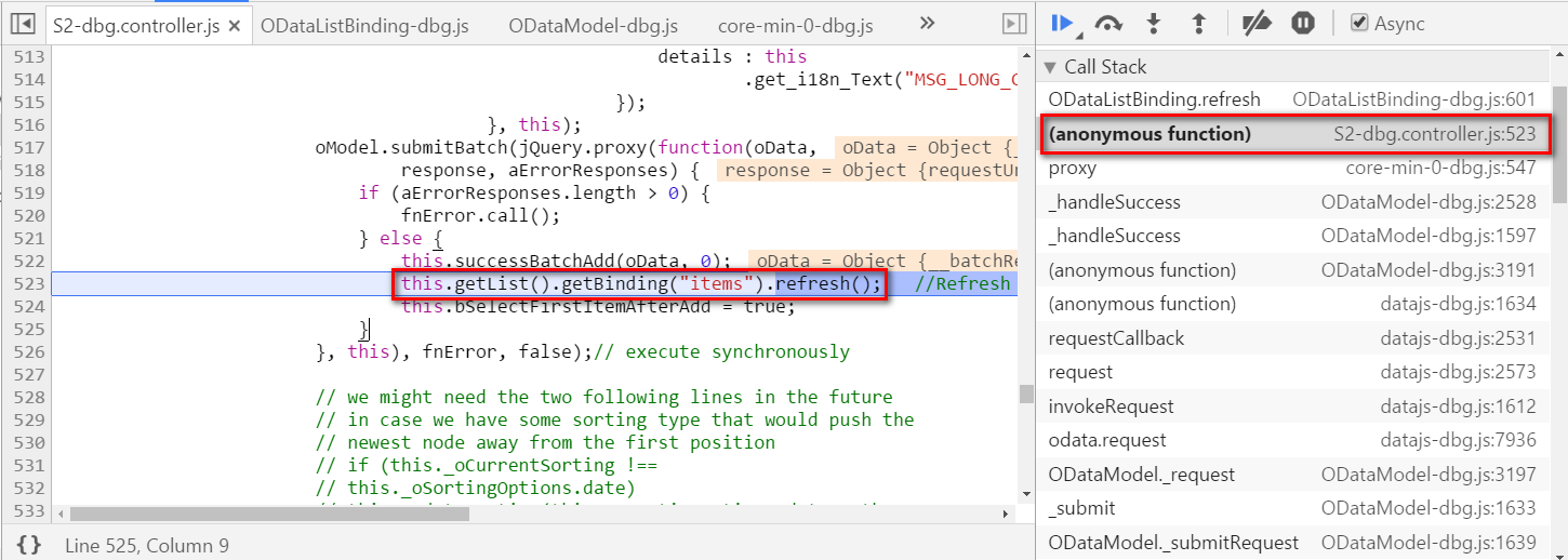 观察产生了被取消的OData请求的应用代码,观察到第523行有这个refresh操作: