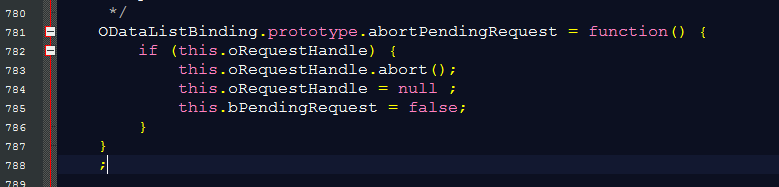 在ODataModel.js中维护了一个http request的pending list,将已经发送但是还没有收到响应的request对象都缓存在这个列表中: