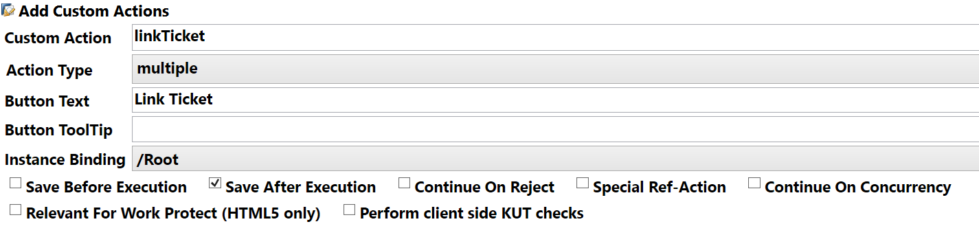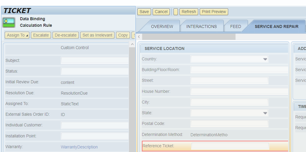 通过Cloud Application Studio将这个新字段配到UI上,同时在工具栏里新增一个按钮,绑定到BO的action linkTicket上。