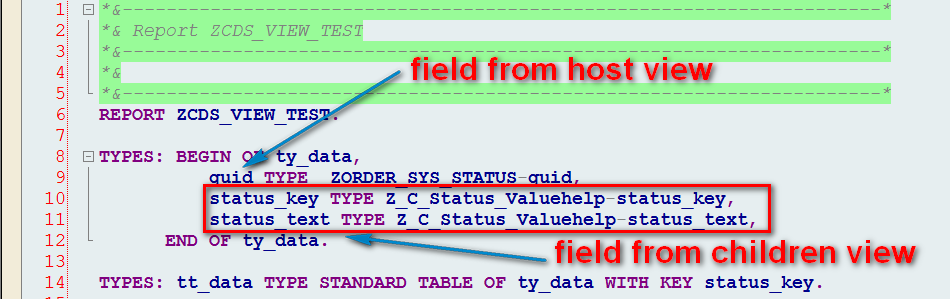 现在我的需求是:在ABAP代码里只需要一次读操作,既能读出主view里的guid字段,又能读出association view Z_C_Status_Valuehelp暴露出的两个字段STATUS_KEY和STATUS_TEXT。
