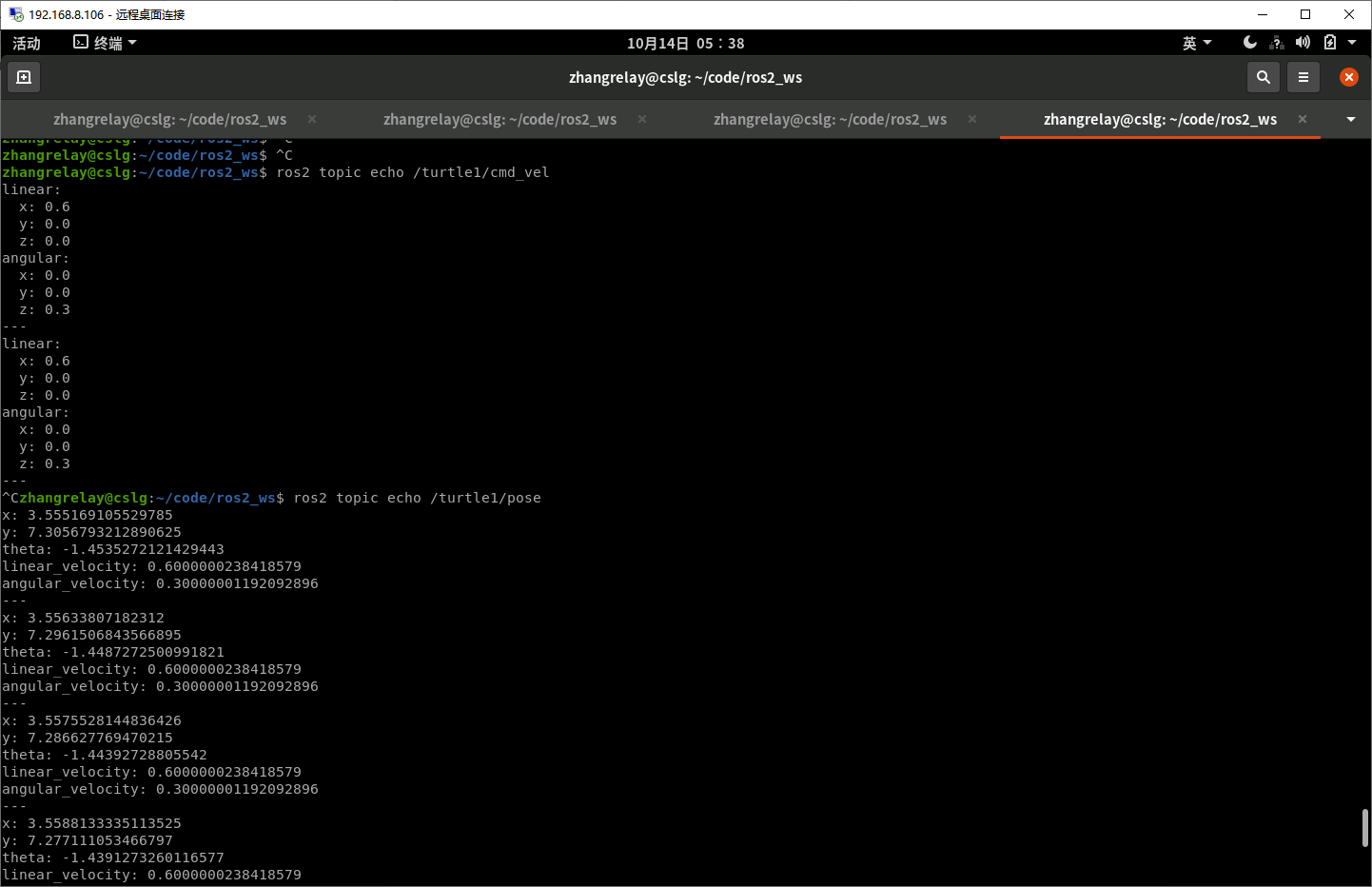 zhangrelay@cslg:~/code/ros2_ws$ ros2 topic echo /turtle1/pose