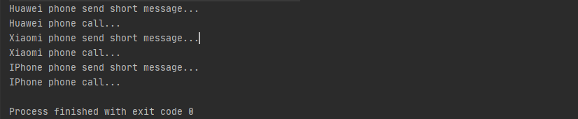 - 华为手机HuaweiPhone、小米手机XiaomiPhone、苹果手机IPhone分别实现了IMobilePhone接口,并重写其中的方法抽象