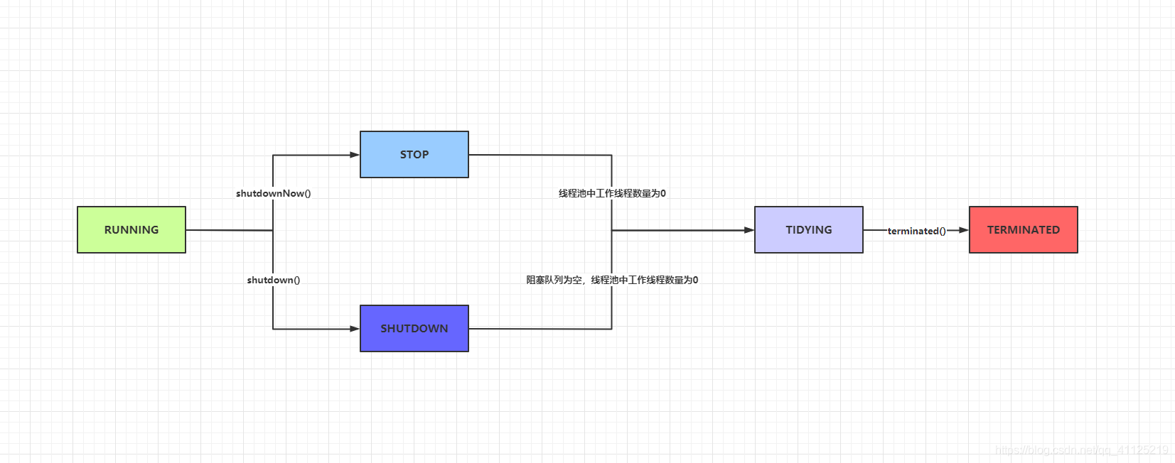 ThreadPoolExecutor 的运行状态有 5 种,分别为: