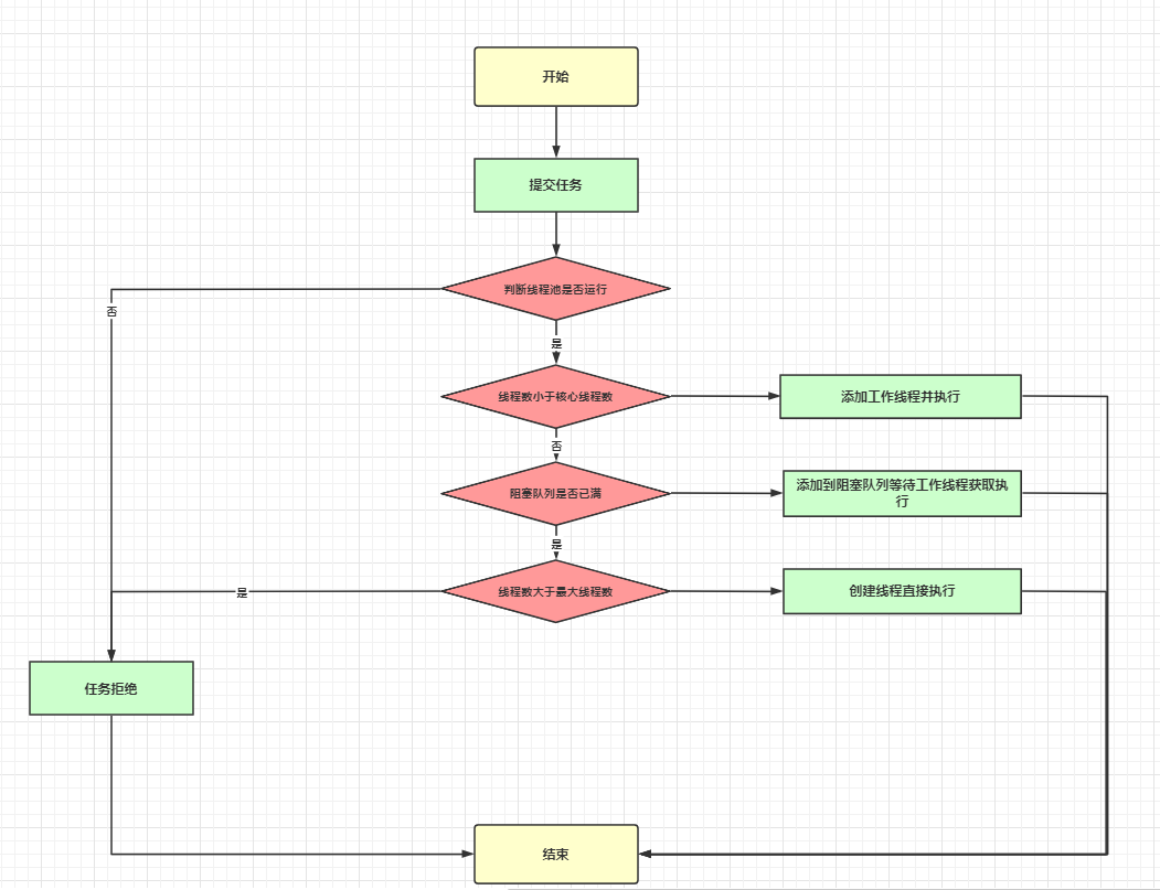- 首先检测线程池运行状态,如果不是 RUNNING,则直接拒绝,线程池要保证在 RUNNING 的状态下执行任务