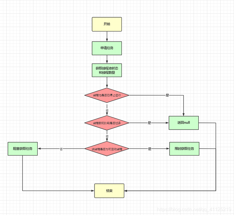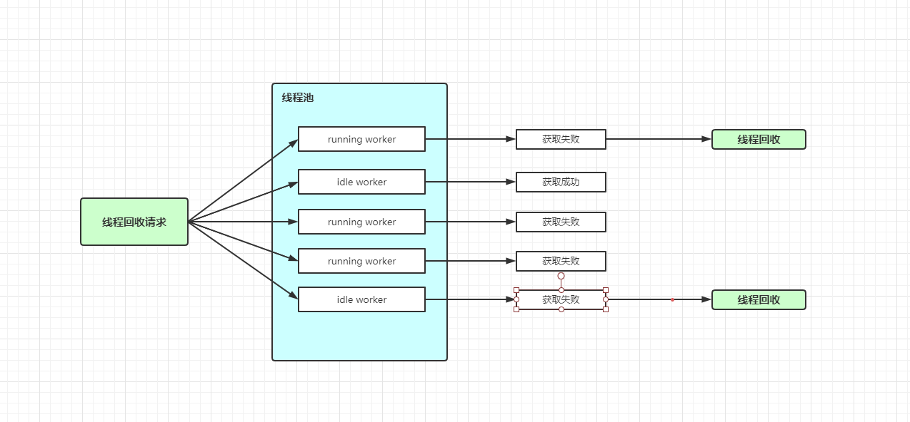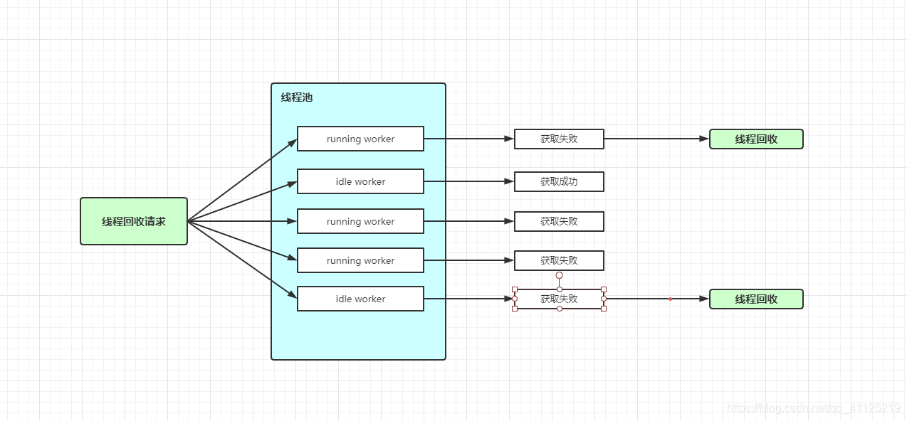 事实上,在这个方法中,将线程引用移出线程池就已经结束了线程销毁的部分。但由于引起线程销毁的可能性有很多,线程池还要判断是什么引发了这次销毁,是否要改变线程池的现阶段状态,是否要根据新状态,重新分配线程。
