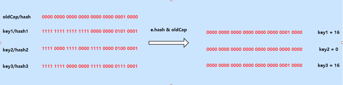 if ((e.hash & oldCap) == 0) {