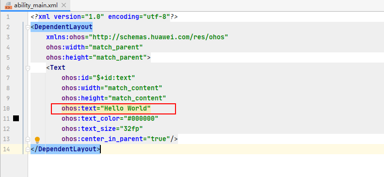 MainAbility运行后执行onStart方法会加载子页面,这里的子页面是MainAbilitySlice,其主要内容如下所示。