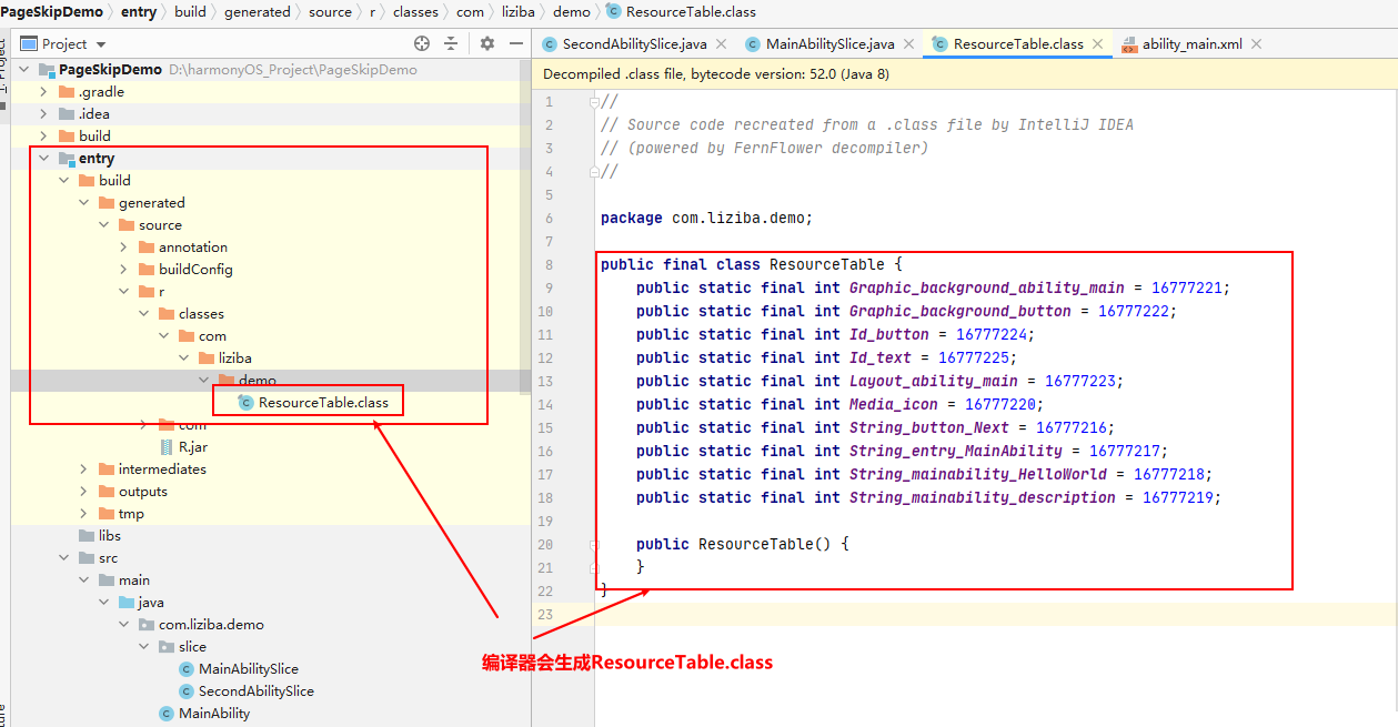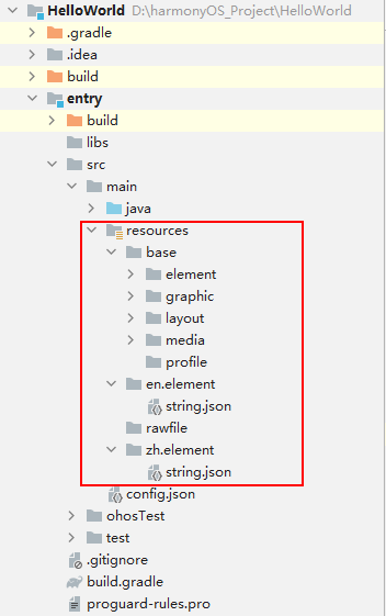 资源文件路径entry -> src -> main -> resource下的全部文件,用于统一存放字符串、图片、音频等资源。