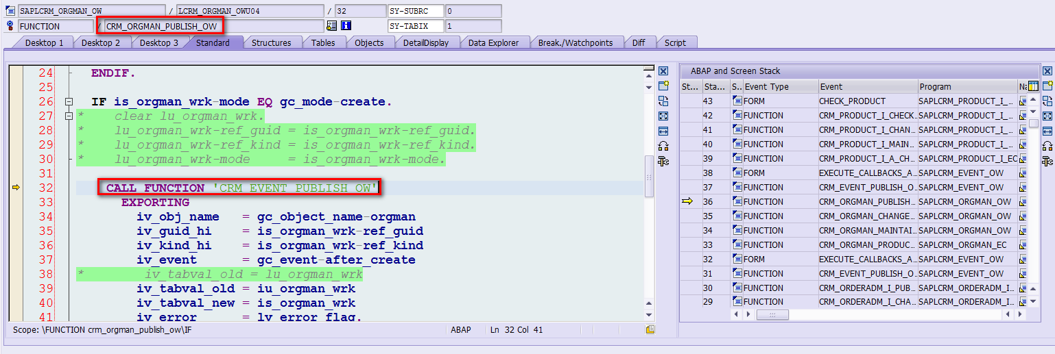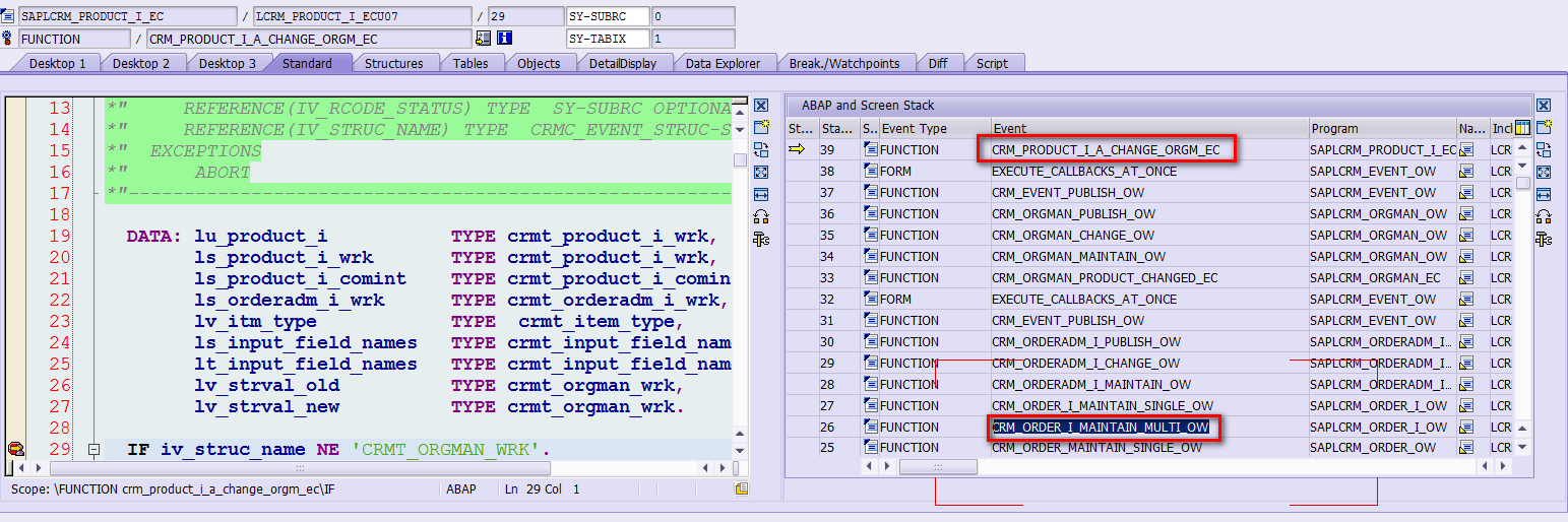 例如需求是搞清楚function module CRM_PRODUCT_I_A_CHANGE_ORGM_EC在什么样的场景下会被调用。当然最费时间的做法是设一个断点,然后跑对应的场景,观察断点何时被触发。也有另一种不通过调试的分析方法:
