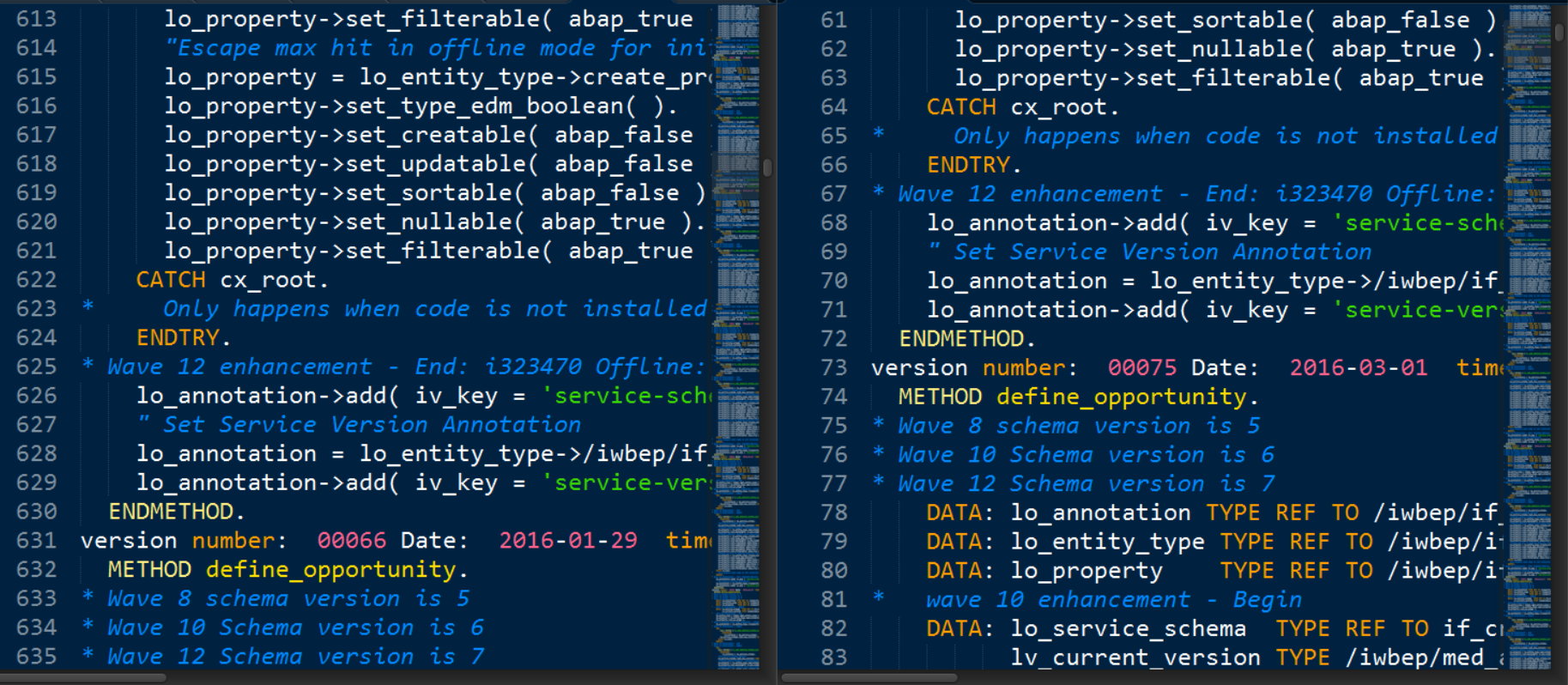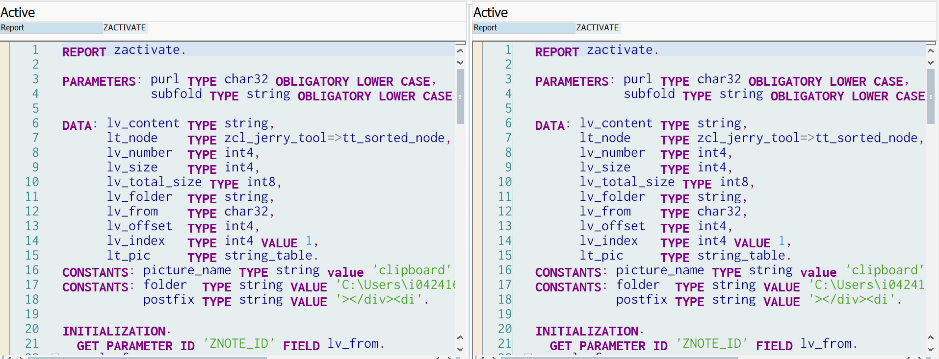 很多文本编辑器都支持同时开左右两个窗口显示同一段代码,使用场景可能是比较同一段代码的不同版本差异,或者是ABAP里,同一段代码在Netweaver不同版本里的实现差异,比如版本为SP1的系统A和版本为SP2的系统B。