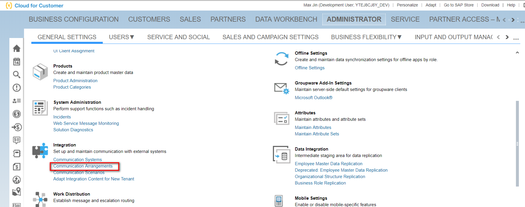 3. 基于前一步创建的communication scenario JerryTicket2创建一个Communication arrangement。至此C4C配置完成。