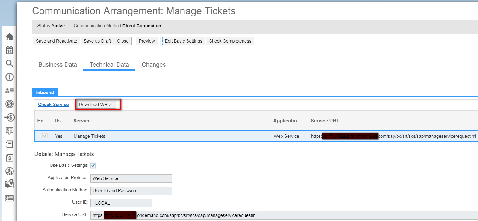 因为我是在当前C4C系统上的ABSL里调用当前C4C系统提供的Web Service,所以Communication System选择Local: