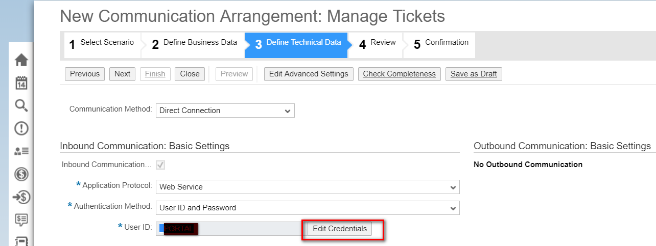 基于Manage Tickets这个标准的Communication Scenario创建一个Communication Arrangement: