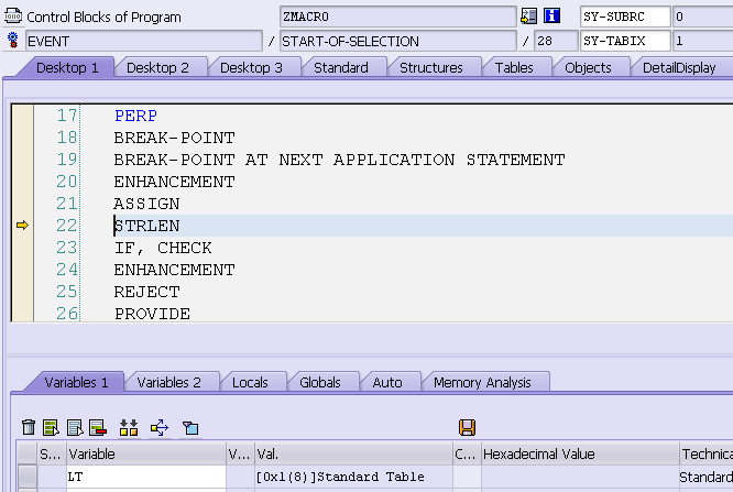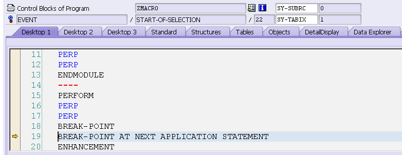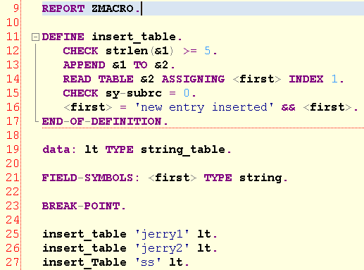 这个例子的完整调试过程讲解,请参考我的SAP博客:https://blogs.sap.com/2013/11/17/single-step-debugging-on-macro/