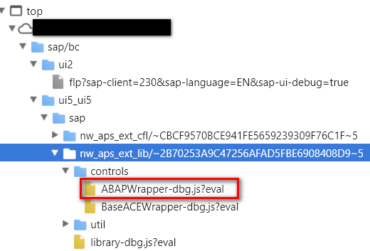 根据这个命名空间找到实现ABAP编辑器的UI5应用,如下图: nw_aps_ext_lib.