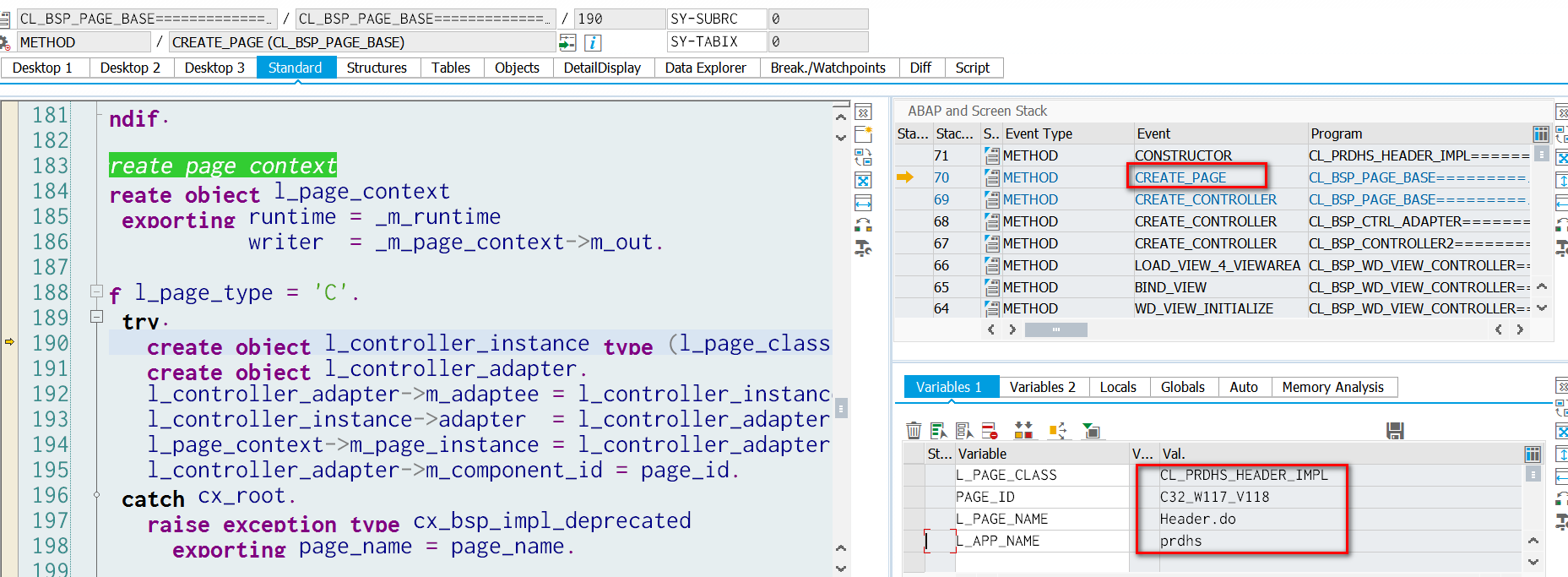 同UI5逻辑类似,在CL_BSP_PAGE_BASE~CREATE_PAGE内部,第190行创建controller的实例并将其同View实例建立关联关系。