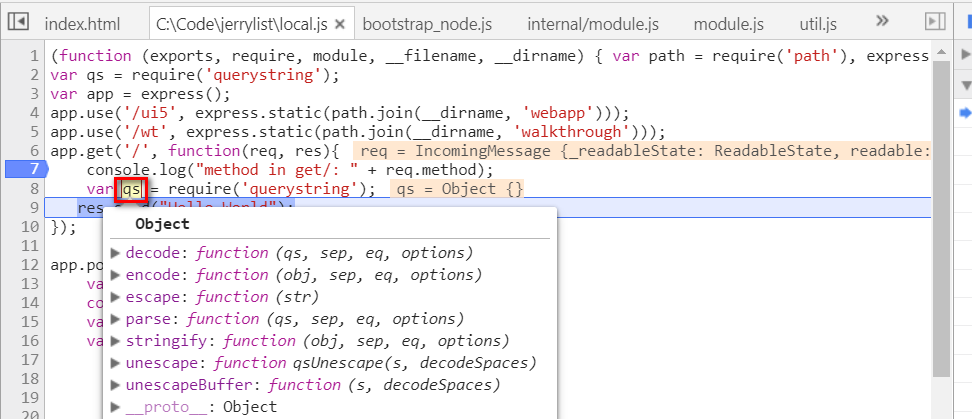 逻辑和UI5类似,假设我想使用queryString这个module,只需要用nodejs标准的require函数将其引入: