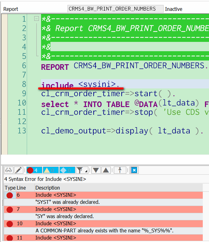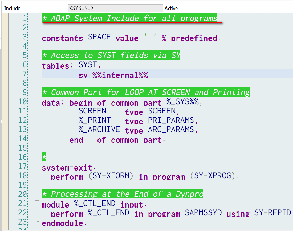 值得一提的是,ABAP report悄悄得include了很多标准的program,比如<sysini>.
