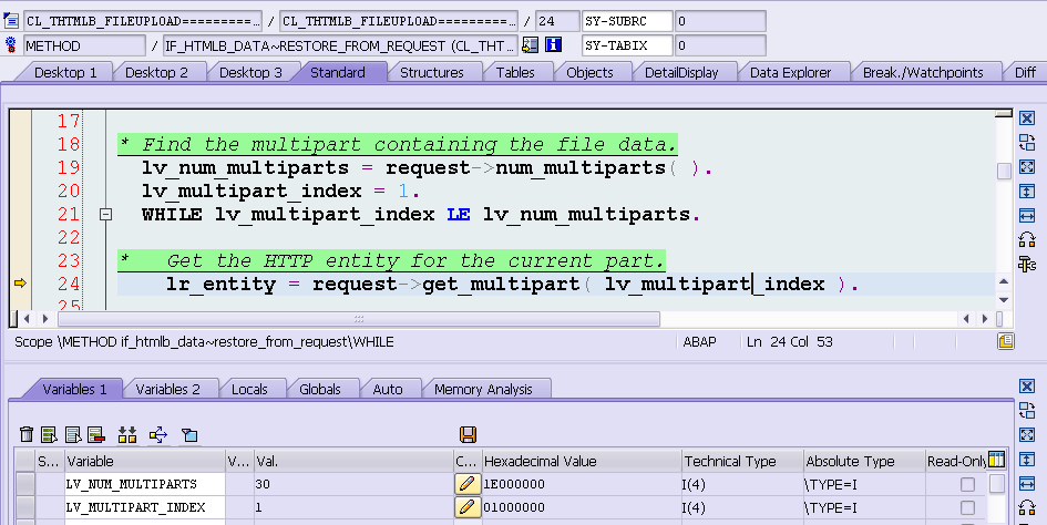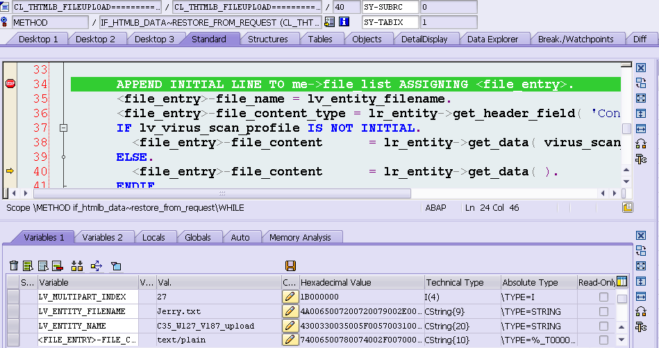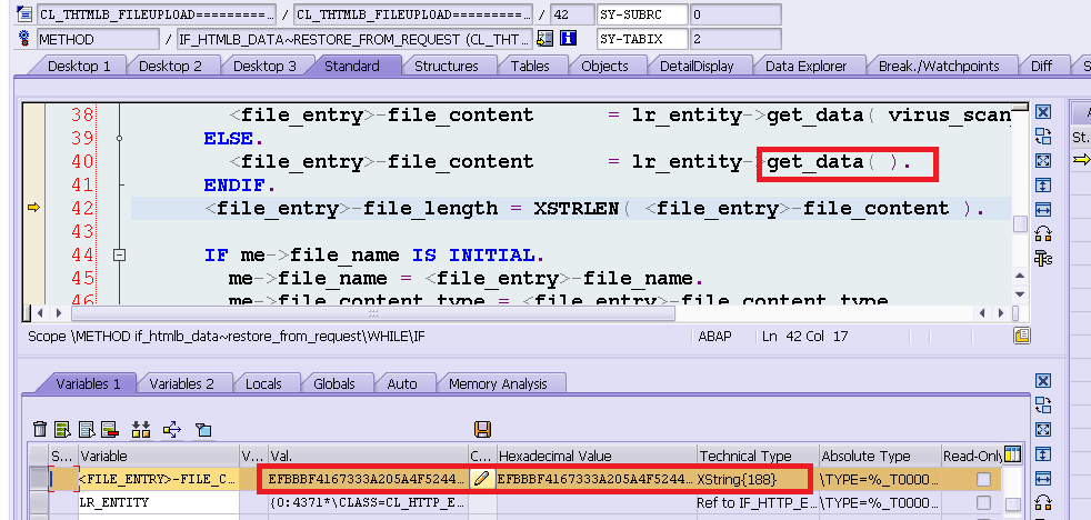 但是在ABAP调试器里看到的上传的文件内容仍然和文件本地用UltraEdit打开观察到的一致。