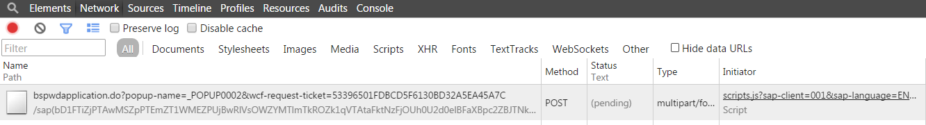 从Chrome开发者工具的network标签能观察到,UI向ABAP后台发送了一个http post请求: