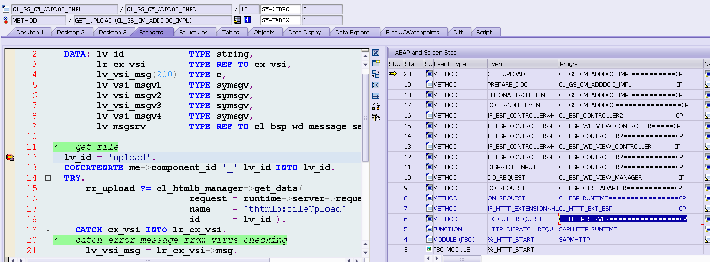 点Attach按钮后,触发ABAP后台的事件处理函数: