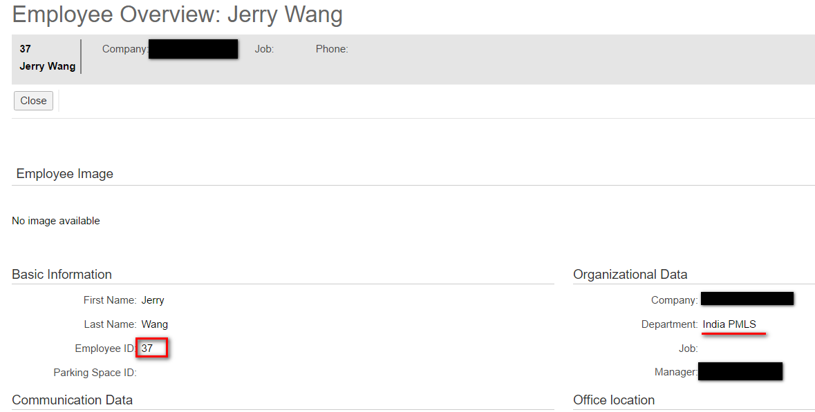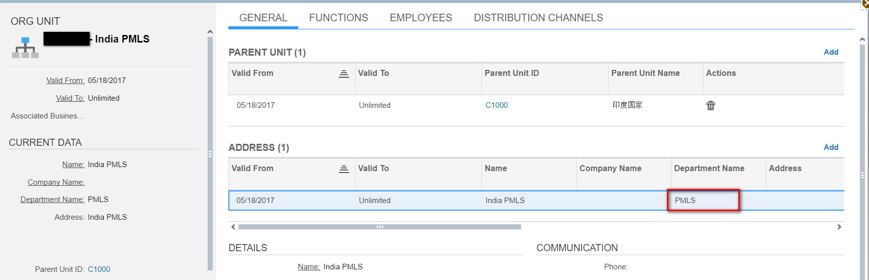 在Employee的Organization Data区域内看到分配的组织名称,如下图红色下划线所示: