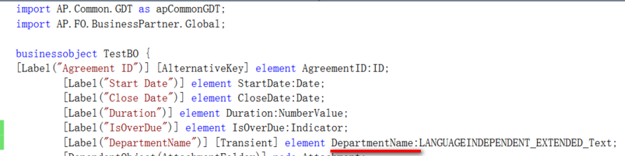 具体实现:新建一个custom BO,使用字段DepartmentName存储这个待取的值: