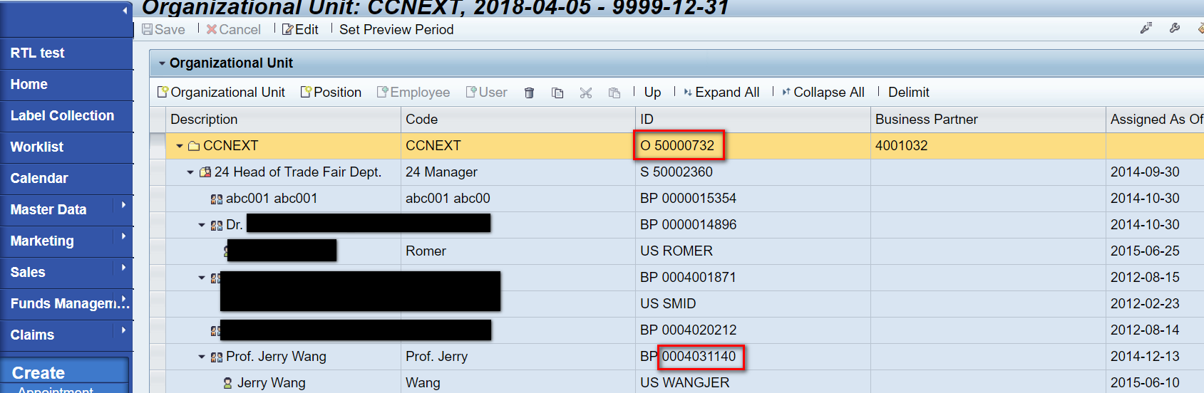 假设Jerry Wang分配的Organization Unit ID为50000732,使用下列report打印出这个ID: