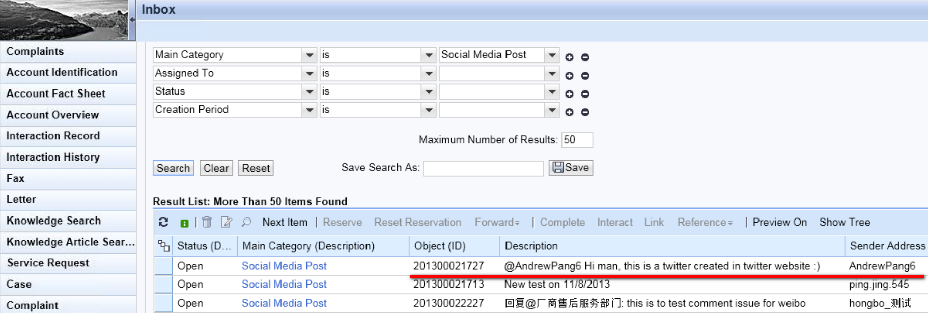 Twitter的内容导入SAP CRM Interaction Center呼叫中心