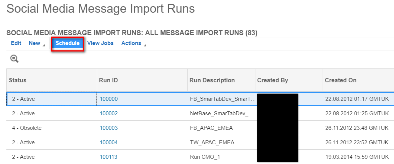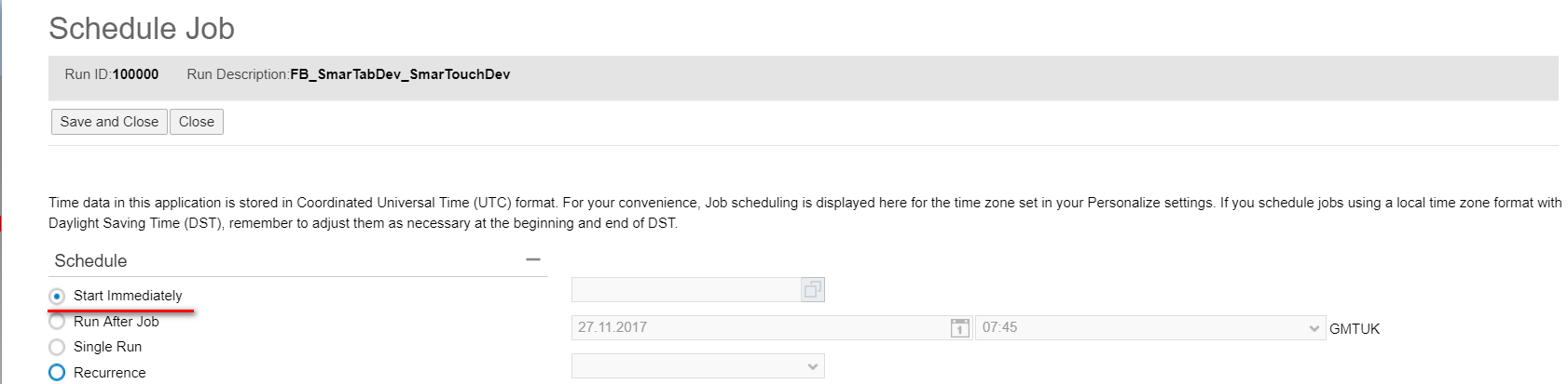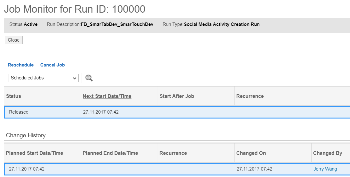 和CRM系统一样后台都是基于Netweaver,只是客户无法和CRM一样使用事务码SM36进行后台作业的管理。但是类似的功能可以在C4C前台页面完成。点击Schedule按钮可以重新调度一个后台作业: