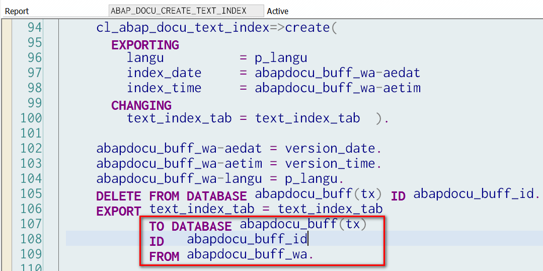 负责填充buffer表ABAPDOCU_BUFF, 以便ABAP帮助文档的快速读取。
