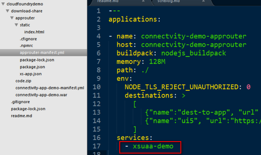 App Router怎么知道需要把请求转发给具体哪一个XSUAA实例呢?在App Router的manifest.yml里配置