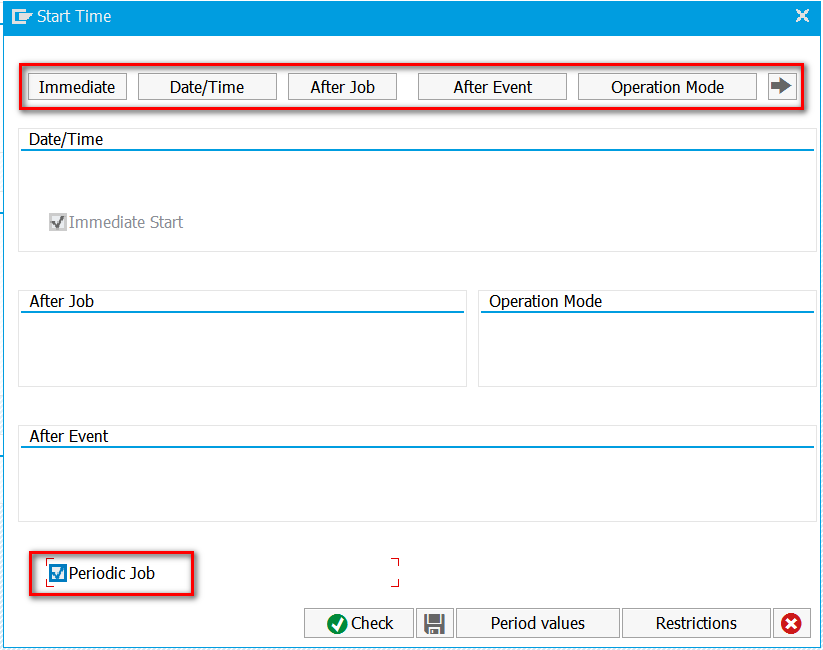 这个作业执行参数设置和ABAP后台事务码SM37里的时间设置是一致的: