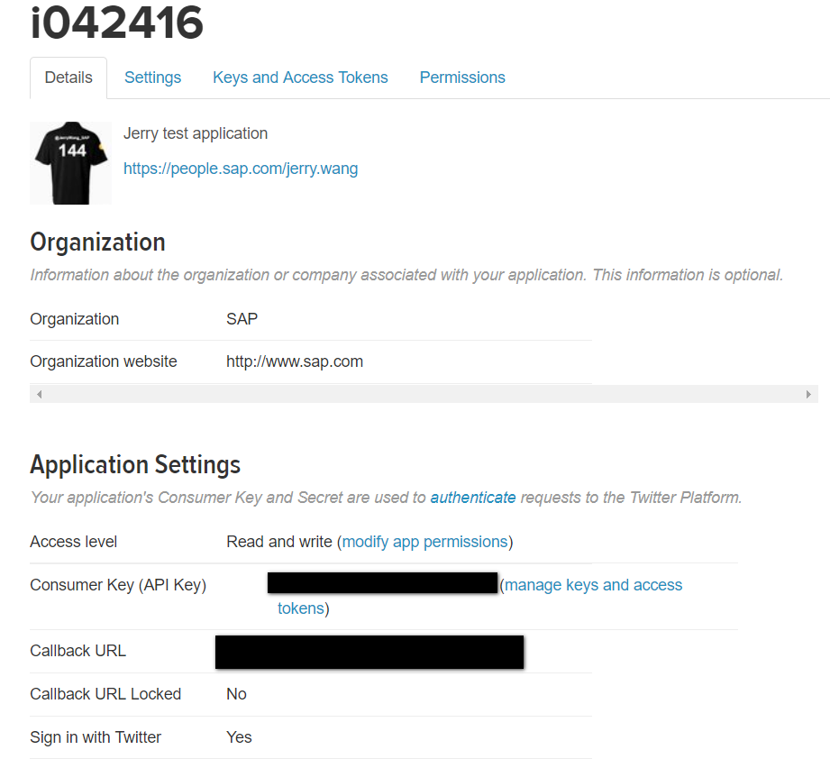 Consumer key和Consumer Secret从Twitter应用管理网站上获取(您需要事先创建一个新的twitter应用):