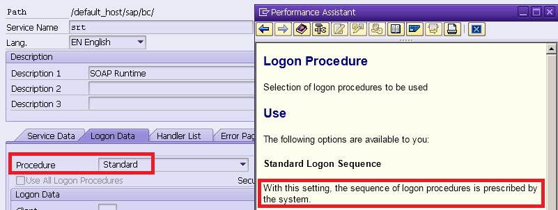 在事务码SICF里选择一个服务,在明细页面对Procedure字段点击F1,查看Logon Procedure的帮助文档。