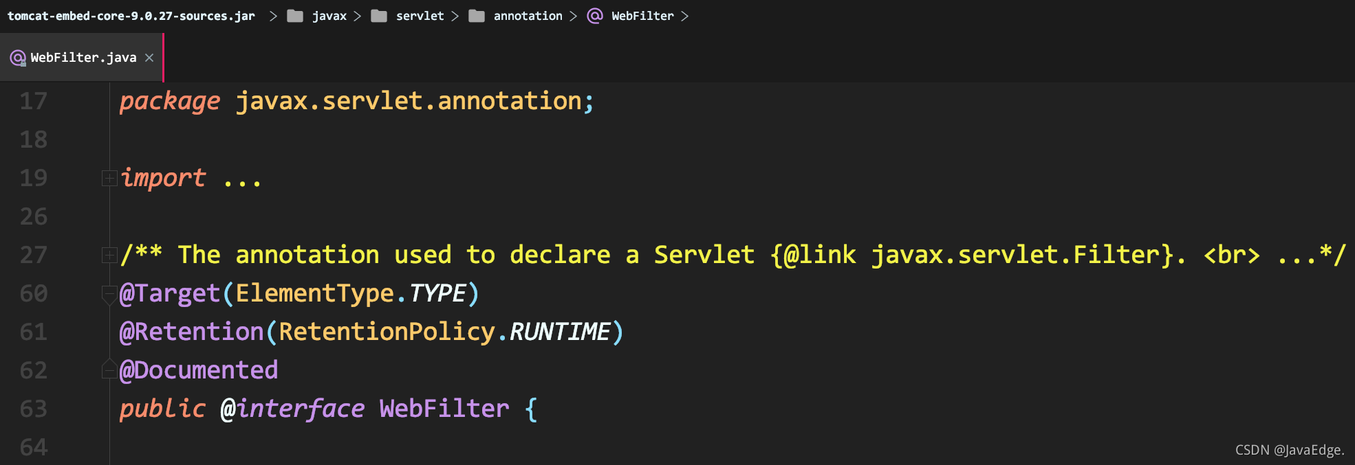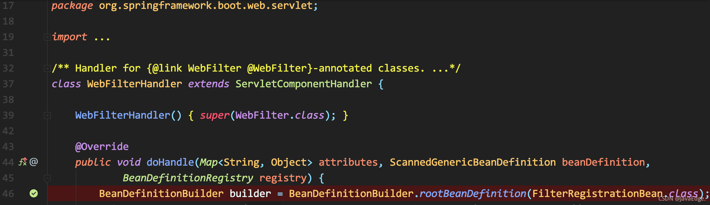 WebFilterHandler则负责处理 @WebFilter 的使用: