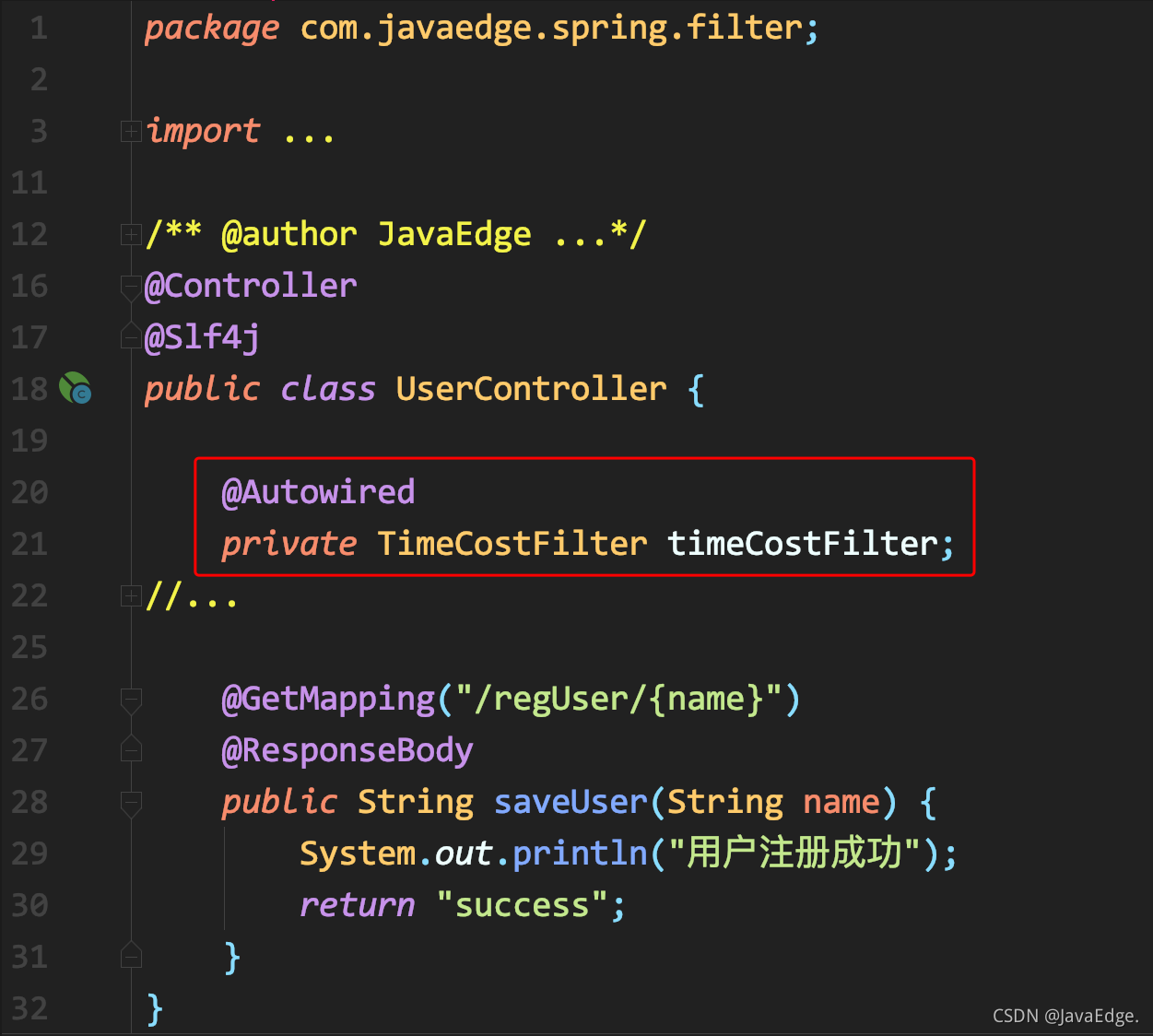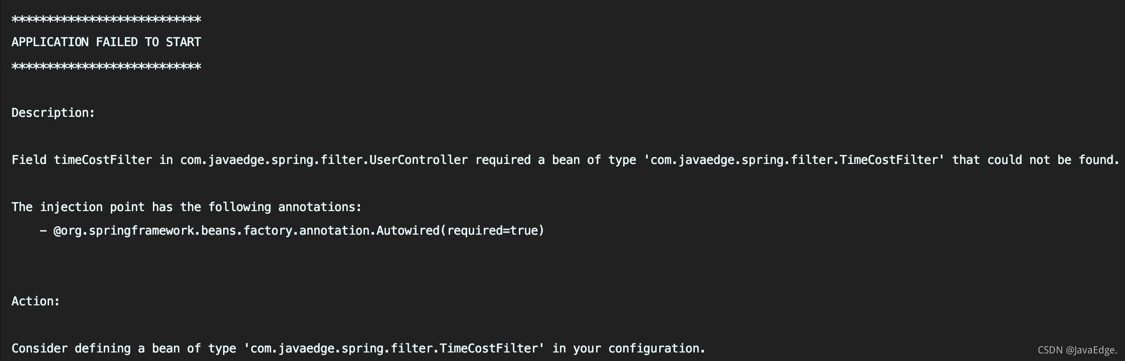 所以当我们想自动注入 TimeCostFilter 时,就会失败。知道这个结论后,我们可以带着两个问题去理清一些关键的逻辑:
