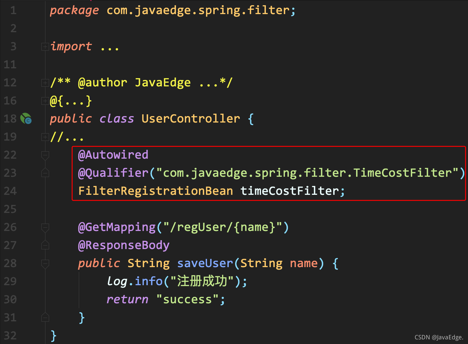 - 注入 FilterRegistrationBean 类型,而非 TimeCostFilter 类型
