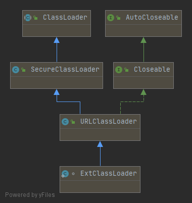 从扩展类加载器和系统类加载器的继承关系图可以看出两者均是继承自java.lang.ClassLoader抽象类。因此介绍下ClassLoader中几个重要的方法: