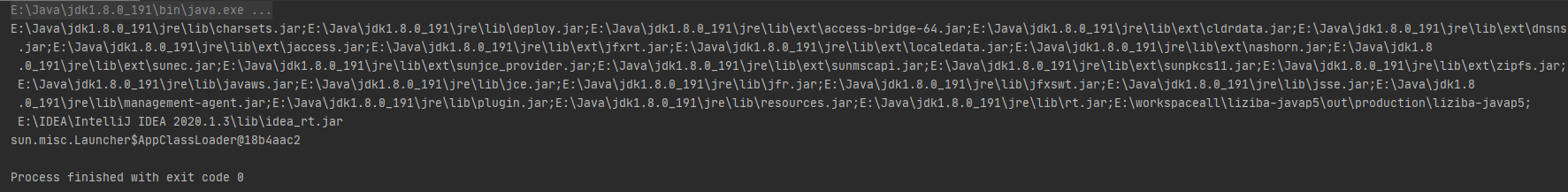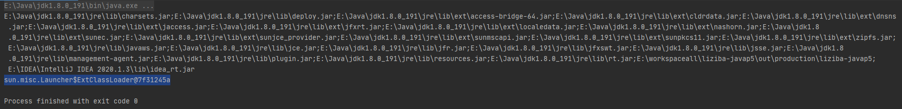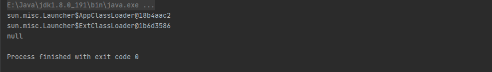 再次运行代码测试,查看输出结果:sun.misc.Launcher$ExtClassLoader@7f31245a