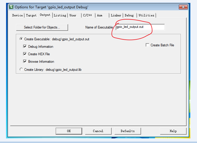 因为默认生成了.out文件,将.out 去掉,就可以生成axf文件了。