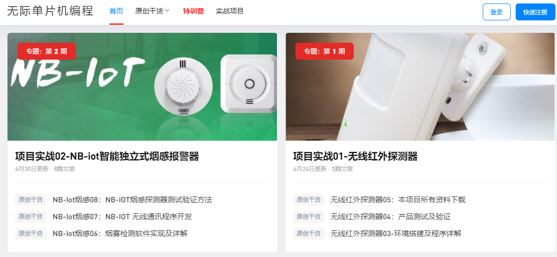 我们也有2个半开源的项目,比如说NB-IOT烟感,无线红外传感器等等。