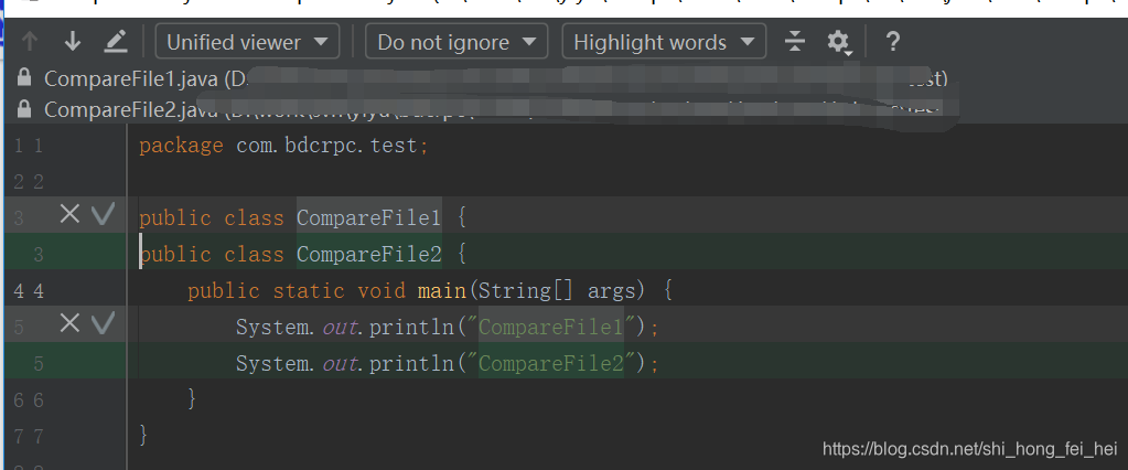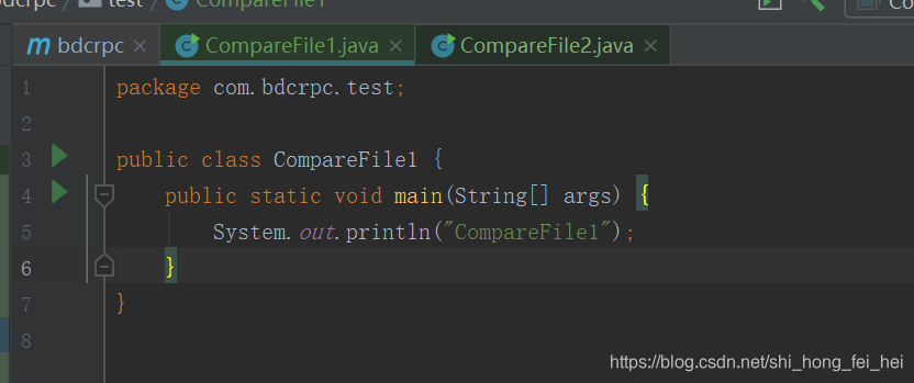 步骤:1、新建两个文件CompareFile1.java,CompareFile2.java